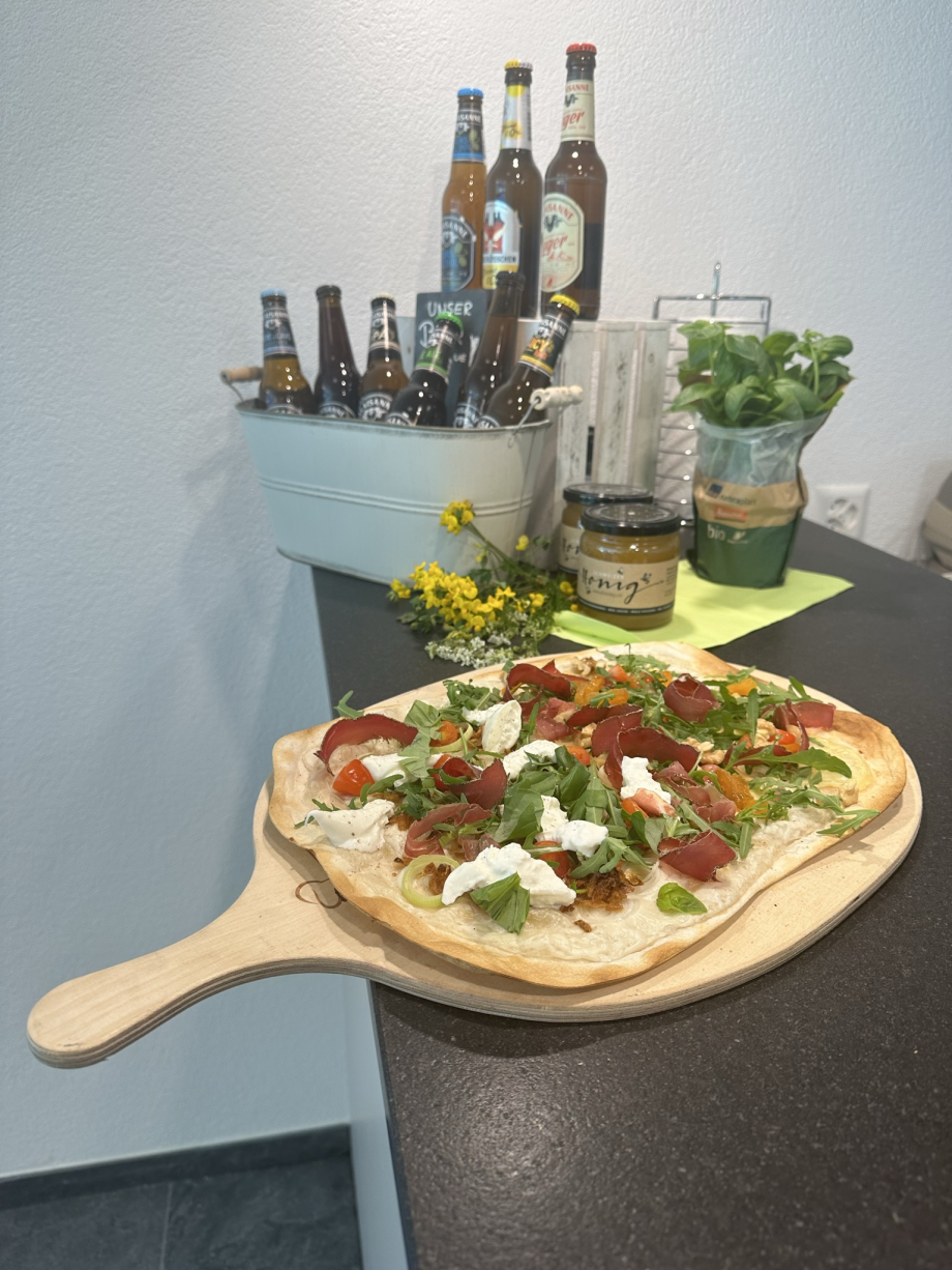 Kleine Leckereien Flammkuchen "Flleiger" Knusprig, cremig, mit Zwiebeln und Speck – der perfekte Start! - **Flammkuchen "Vegetarisch"** Veggie-Style mit Crème fraîche und Paprika. Auch lecker ohne Fleisch! - **Sandwiches** - **Schinken & Käse** - **Tomate & Mozzarella** Zwei Klassiker, die immer gehen! - **Toast** Mit allem, was du magst: Käse, Schinken oder einfach Gemüse. Schnell und gut! ### **Süße Verführungen:** - **Zimtschnecken** Frisch aus dem Ofen – Zimt, Zucker und ein Hauch von Glück! - **Kuchen des Tages** Wer weiß, was heute auf dich wartet? Lass dich überraschen! - **Mini-Törtchen** Klein, aber oho! Für den perfekten süßen Moment. ### **Getränke:** - **Kaffee & Tee** Der nötige Kick für deinen Tag – Espresso, Cappuccino oder doch ein Tee? - **Frische Säfte** Frisch gepresst, so lecker wie die Sonne an einem Sommermorgen! --- Ich hoffe, diese Version bringt ein Lächeln! Let me know, wenn du noch etwas ändern willst!Speisekarte