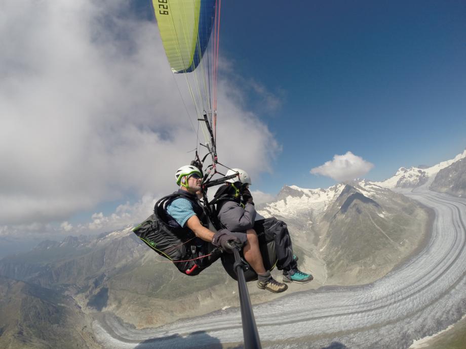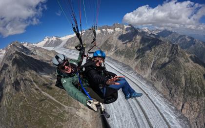Fliegen mit Thermik, immer höher und noch höher. Den Gletscher zu Füssen und frei sein, wie ein Vogel von einem Berg zum nächsten. Ein befreiendes Erlebnis in der Aletsch Arena.